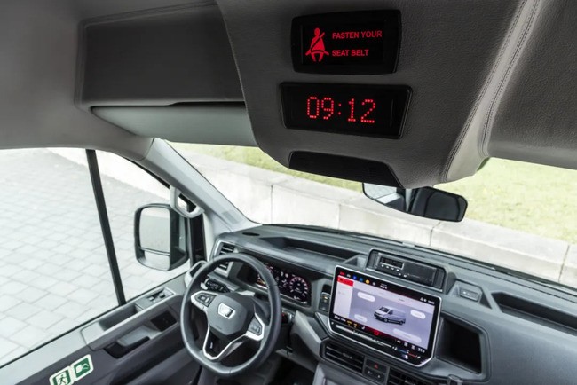 其注重安全与舒适的平衡,驾驶员工作区采用人体工学设计,搭载数字驾驶舱与多功能方向盘;展车还采用限量版TGE LoungeLine 内饰与环境照明系统,提升乘客乘坐体验。该车可容纳16名乘客,宽大的电动摆动门方便乘客上下车。