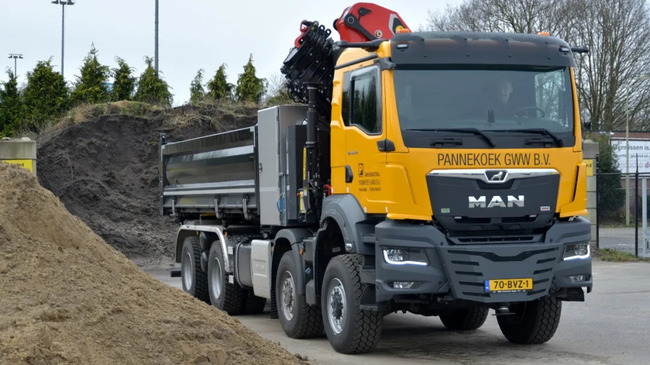 图中为一台曼恩TGS 8x8自卸车,它的型号为TGS 45.510 WS。该车近日交付给了荷兰Pannekoek GWW BV公司,用于机械工程、混凝土工程及基础设施建设领域。针对工程实际需求,这台曼恩TGS自卸车还搭载了随车吊,由曼恩Individual部门与改装厂通力合作而来。