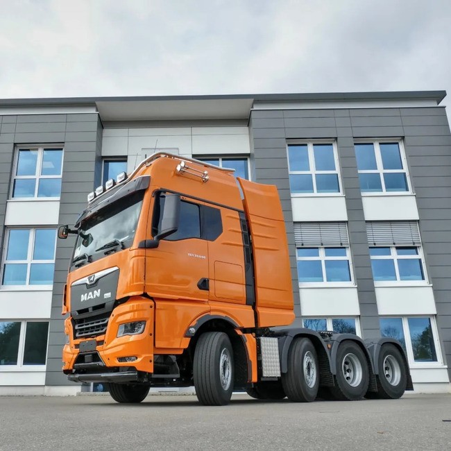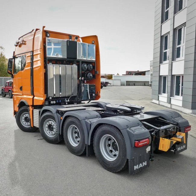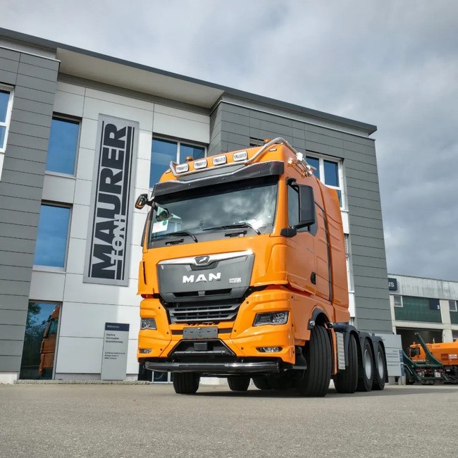 最近,曼恩底盘改装合作伙伴Toni Maurer又开始整活了,这一次改装的是一辆TGX33.640牵引车。客户要求从三轴变为四轴,因此,这辆在内部称为“超短四轴”的牵引车就诞生了。